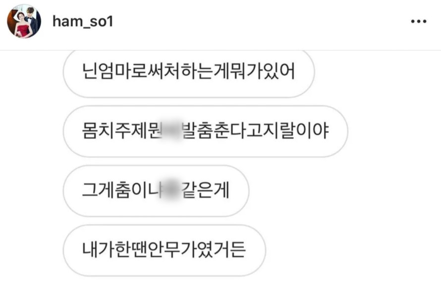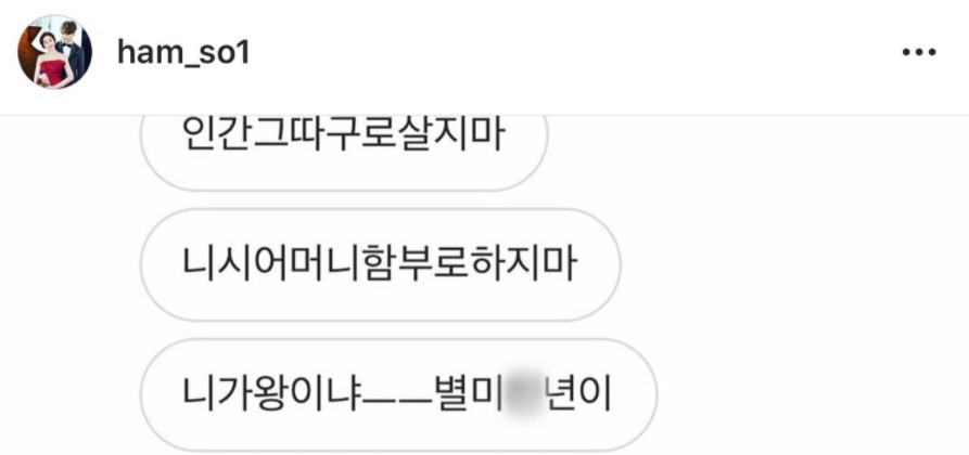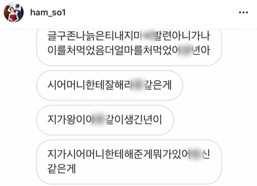 함소원이 받은 디엠 내용을 보면 차마 입에 담기 힘든 심한 비속어와 말들이 있었다.