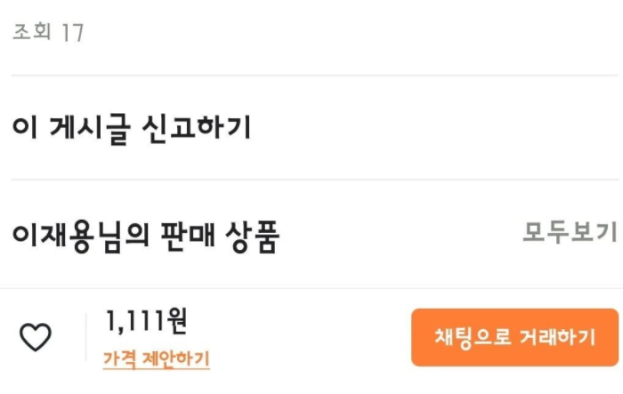 해당 게시글에는 ‘이재용’이라는 닉네임을 사용하는 당근마켓 사용자가 올린 판매글에 대한 내용이 담겨있었다.