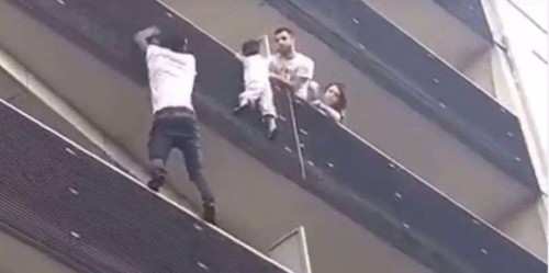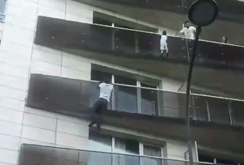 프랑스와 영국 언론에 따르면 지난 26일(현지시간) 오후 파리 북부 18구의 한 아파트 5층 발코니에 4살 남자아이가 위험천만하게 매달려 있는 모습이 포착됐다.
