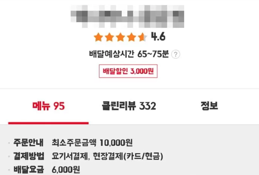 최소 주문금액이 1만 원인 한 식당도 배달팁이 6천 원에 이르렀다.