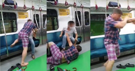 지하철 2호선에서 한 남성이 마스크 착용을 요구한 승객에게 폭행을 가하는 영상이 화제를 모으고 있다.