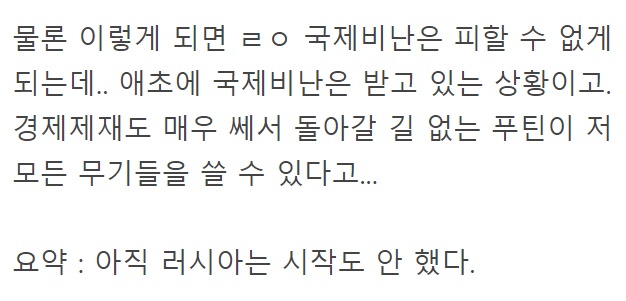 그러나 과거 소련에 비해서는 못 미친다고 해도 러시아는 여전히 거대한 영토와 인구와 자원을 지닌 강대국이기 때문에 지금의 러시아군 역시 여전히 세계에서 손에 꼽히는 강군이다.
