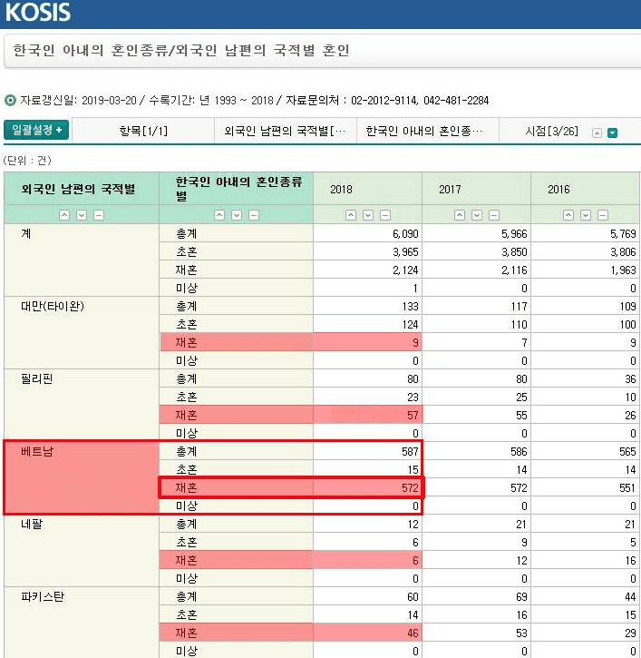 그래서 베트남 여자들이 한국 여성으로 카운트 되기 때문에 비율이 올라갔던 것이었다.