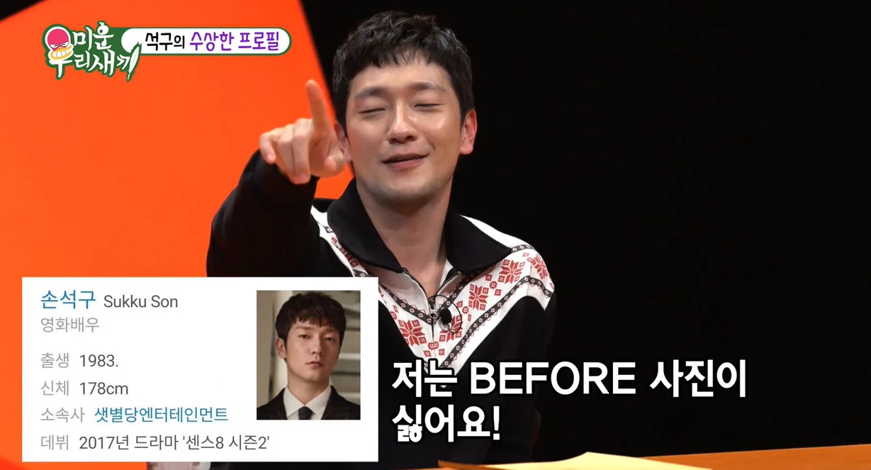 방송에서 자료 사진으로 손석구의 비포(Before), 애프터(After) 사진 두개가 공개되었는데, 배우처럼 보이는 비포(Before)사진에 비해 애프터(After)사진은 머리가 짧은 손석구가 정직한 자세로 있어서 웃음을 주었다.