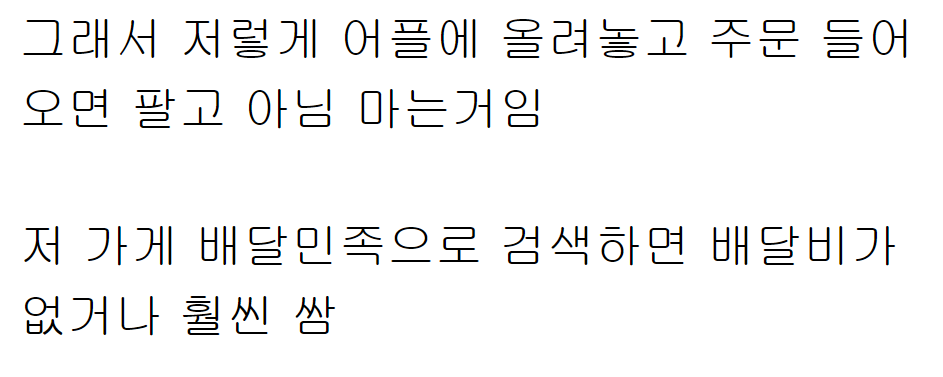 “헐.. 우리랑 화면 완전 다르네”…우리가 보는 화면이랑 완전 다른 배민 어플 ‘사장님’들이 보는 화면 “ 우리가 보는 화면이랑 완전 다른 배민 어플 가게 사장님들이 보는 화면 “ ADVERTISEMENT 배달의민족은 우아한형제들에서 운영하는 대한민국 배달 주문 서비스 브랜드명이다. 요즘 배달 문화가 매우 보편화되면서 많은 사람들이 이용하고 있는 서비스다. 그런데 최근 이와 관련된 글이 한 온라인 커뮤니티에 올라와 네티즌들의 이목이 집중되고 있다. ADVERTISEMENT [저작권자 VONVON/ 무단복사, 무단전재 및 재배포 금지 (위반 시 법적조치)]
