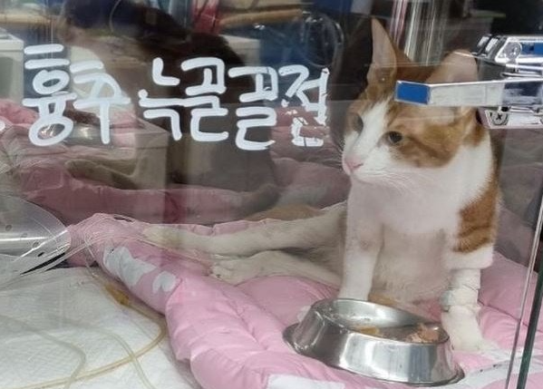 그는 고양이의 상태에 대해 “척추 골절로 하반신이 마비돼 현재 대소변을 가리지 못하고 있다” 며 “척추 골절뿐 아니라 이전 학대로 발생한 다발성 골절로 인해 갈비뼈 13개가 골절됐다” 고 밝혔다.