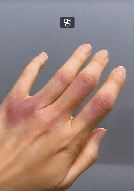 첫 번째 영상에는 손가락부터 손등까지 온통 멍으로 물든 클라라의 손이 확대 되어 올라왔다.