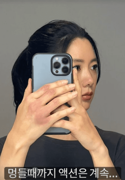 해당 게시물에는 차례로 “멍” “멍들 때까지 액션은 계속…” 이라는 문구와 함께 사진이 게시 되어 있었다.