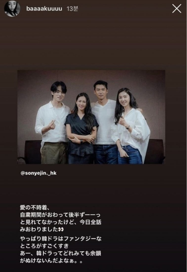 그는 자신의 SNS에 사랑의 불시착을 보고 “역시 한국 드라마는 판타지한 부분이 너무 좋아요.”, “한국 드라마는 어떤걸 봐도 여운이~”라며 감상을 남겼다.