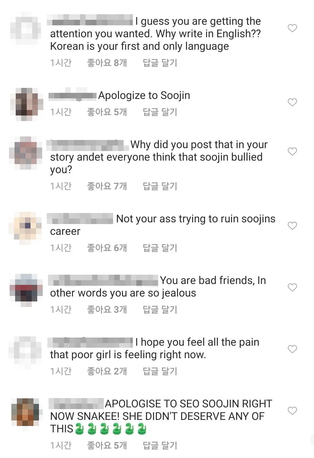 해당 게시물에는 서신애 인스타그램에 있는 댓글들이 첨부돼 있었다.