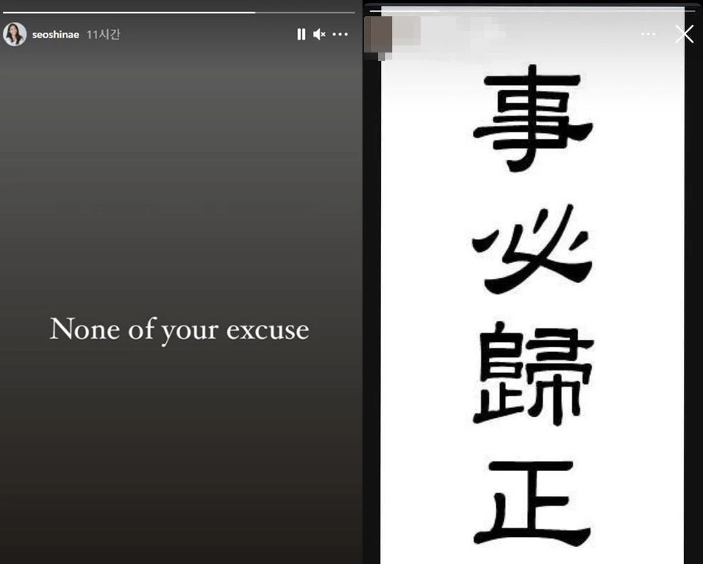 서신애는 지난 21일 자신의 인스타그램에 “None of your excuse(더 이상 변명할 필요가 없다)”라는 글을 게재했다.