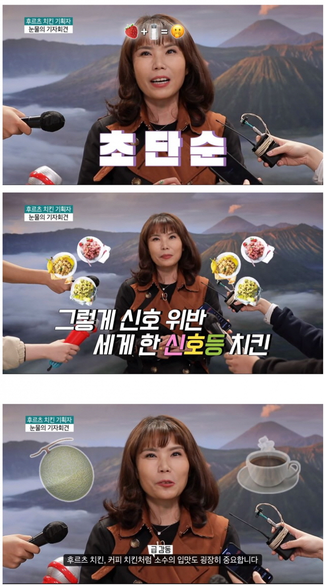 또한 “소스를 뿌리는 치킨도 유행하고 있어서 두 개를 접목시켜 신호등 치킨이 탄생하게 되었다”라며 말을 덧붙였다.