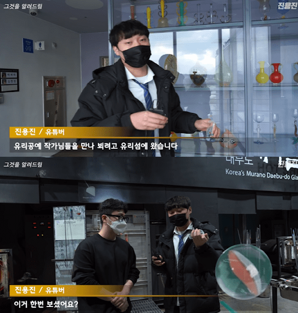 진용진은 구슬 안에 있는 정체를 알아내기 위해 유리공예가를 만나러 갔고 과정을 봤다.