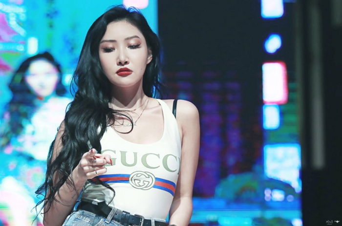 물오른 미모를 자랑하는 트와이스 채영과 ‘인간 구찌’ 대란을 일으킨 마마무 화사 는 ‘Sparkling swimsuit with GUCCI Logo’를 무대의상으로 선보였다.