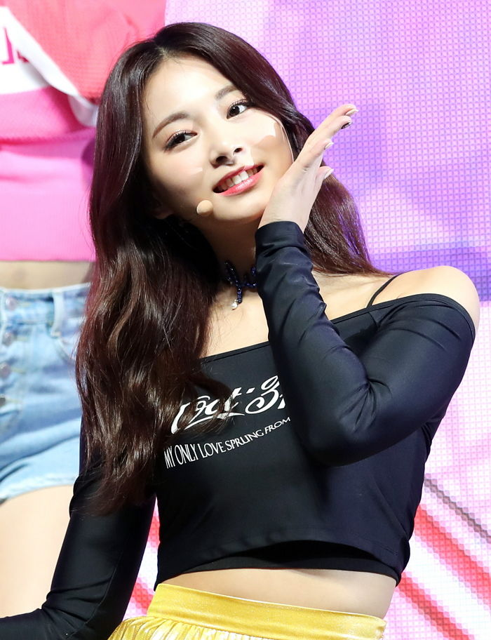 트와이스 쯔위의 경우, ‘옥토버써드 콜라 오프숄더 래쉬가드’를 노란 치마와 매치해 사랑스러운 매력을 한껏 발휘했다.