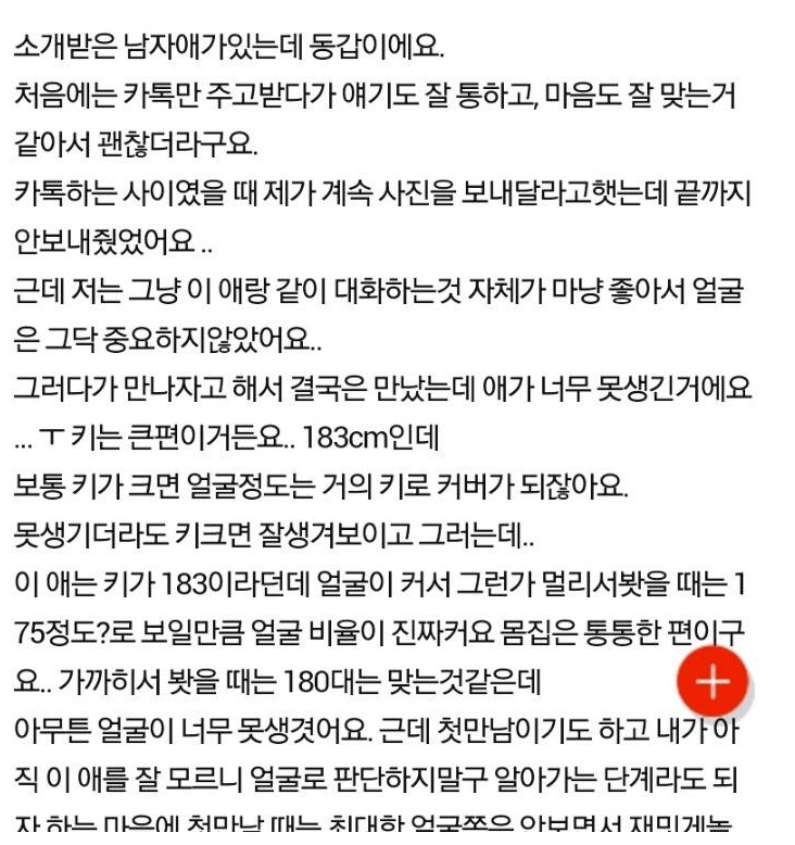A 씨는 “소개받은 남자애가 있는데 동갑이에요” 라 첫 문장을 전했다.