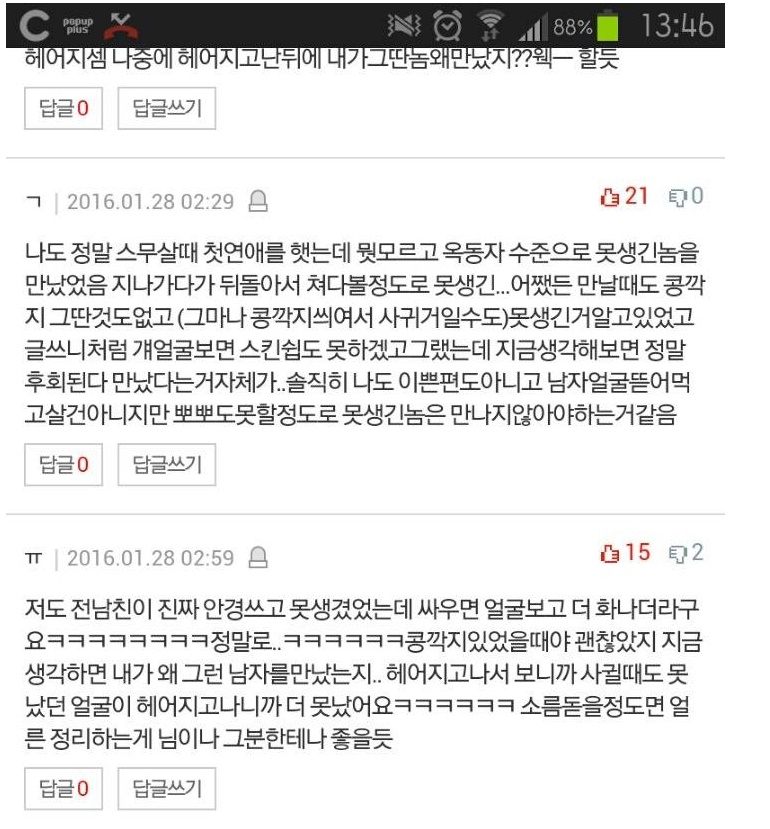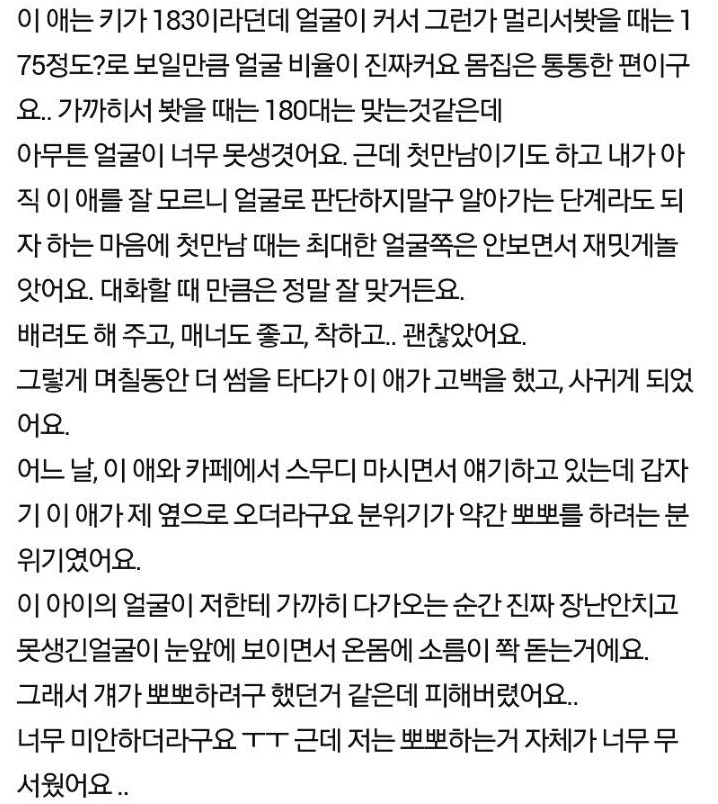 그 이유는 너무 못생긴 상대 남성의 외모 때문이었다.