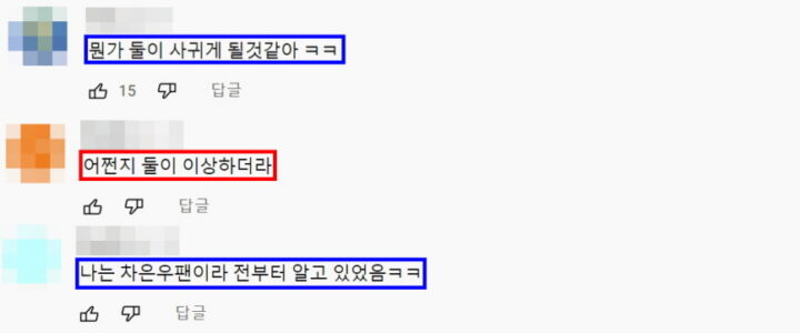 대부분의 네티즌들이 이에 대해서 “뭔가 둘이 사귀게 될 것 같다”, “어쩐지 둘이 이상했다”, “차은우 팬이라 이미 알고 있었다”와 같은 반응을 보이고 있다고 한다.