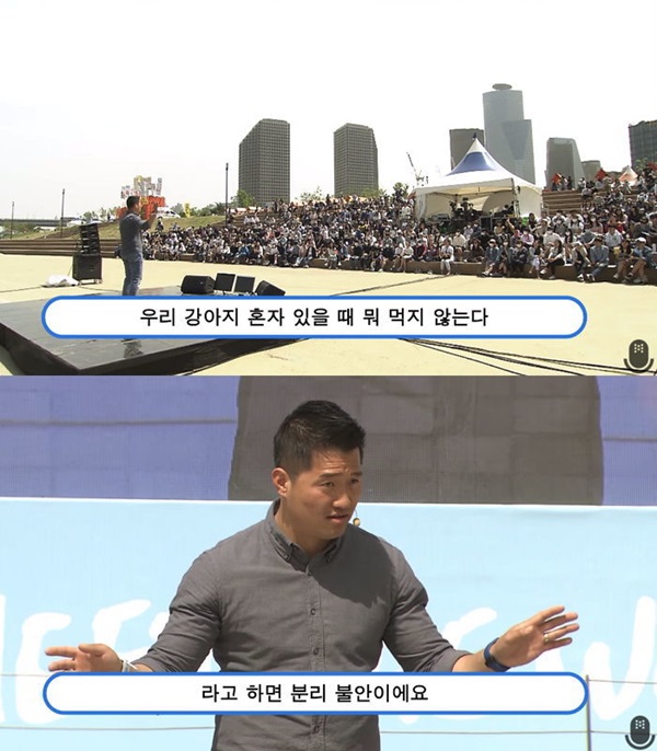 지난해 열린 ‘청춘 페스티벌 2017’에서 강형욱은 반려견의 분리불안 증세에 대해 설명했다.