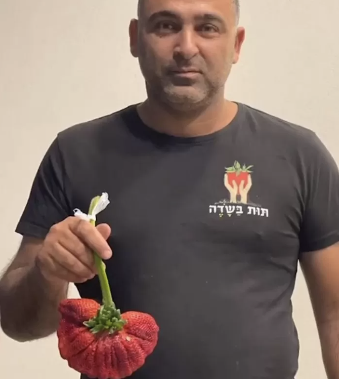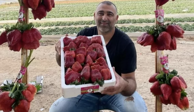 이스라엘의 한 농부가 재배한 초대형 딸기가 공개되어 화제이다.