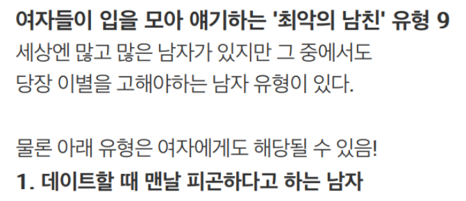여자들이 진짜 하나같이 만났던 남자 중에 ‘최악’이라는 남자친구 유형(+사진)