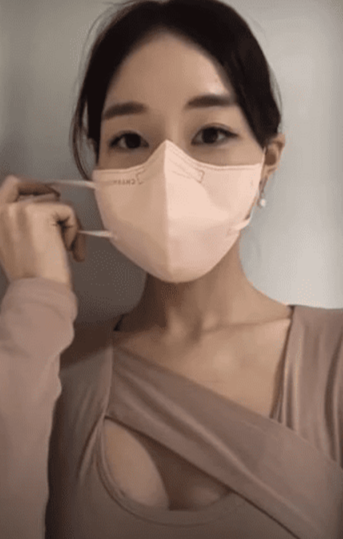 마스크를 벗고는 부끄러운듯 카메라를 보고 미소를 띄었다.