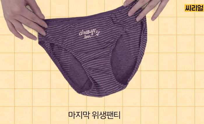 이렇게 생리대를 덧붙여주면 생리혈이 뒤로 새는 것을 막을 수 있다.
