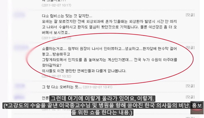 또 “(이 교수가) 쇼를 하는거다. 누가 수원의 아주대를 찾아가느냐”며 자신을 깎아내리고 학벌을 무시하는 댓글들을 직접 읽은 이 교수는 “세상이 뒤에서 참 무섭다”라고 말하기도 해 안타까움을 자아냈다.