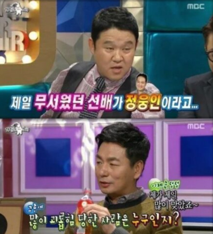 신동엽뿐만이 아니라, 배우 안재욱이 MBC 예능 프로그램 ‘무릎팍도사’에 출연해 ‘정웅인이 술 먹거나 심기가 불편해지면 많이 맞았다’라 실토했다.