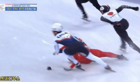 근데 이 선수가 넘어지면서 일본 선수를 끈질기게 방해하는 모습이 한국 네티즌 사이에서 엄청난 화제가 됐다.