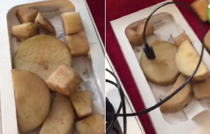 박스 안에는 아이폰 대신 조각난 감자가 들어 있던 것이다. 정확히 11조각의 감자였다.