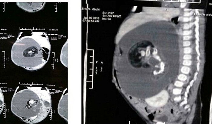 제거한 덩어리에는 형태를 알아보긴 힘들었지만 척추, 뇌 조직, 머리, 팔 눈 등을 가지고 있었다고 한다.
