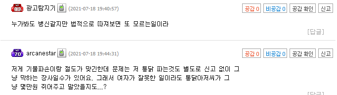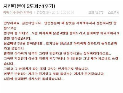 위의 본문 글을 읽고 네티즌들은 “세상에 진짜 이상한 사람이 깔리고 깔렸다는 말을 이해 하겠다”, “어떻게 자기가 꺼낼 생각을 하지??’, “진짜 아저씨 똥 밟았네;;ㅋㅋ”, “그냥 평생 통닭 드시지마세요 ㅋㅋ “, “치료비를 요구하는 수준”, “얼굴에 철판 깔고 다니는 건가싶다ㄷㄷ” 등 다양한 반응과 분노를 표출했다.