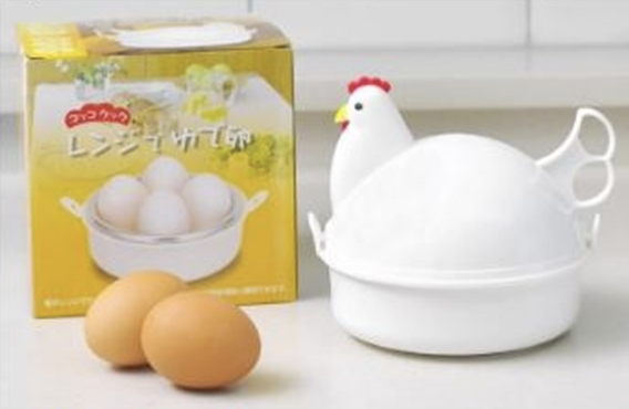 삶은 계란을 편하게 만들 수 있는 제품으로, 찜통 안에 물을 넣은 후 판위에 계란을 넣고 찜기를 전자레인지에 약 8분 돌리면 삶은 계란을 쉽게 만들 수 있는 제품이다.