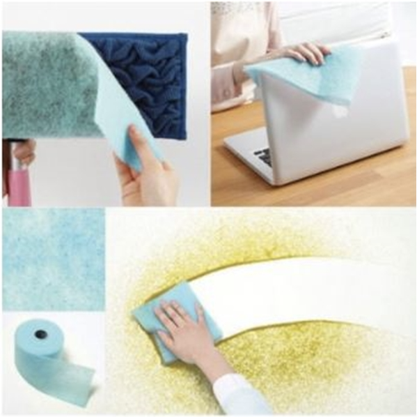 이 청소포는 점착 성분이 있는 부직포여서 사용할 만큼 잘라서 사용할 수 있으며, 먼지를 부직포에다가 붙잡아서창틀이나 방충망, 애완동물 털들을 제거하기 쉽다고 한다.