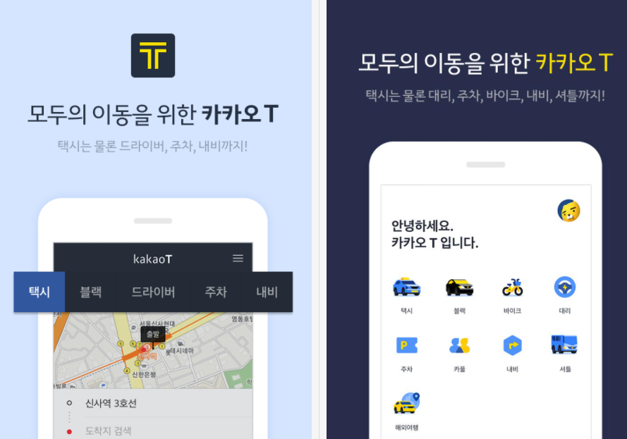 카카오택시의 경우 승객용 앱에서 출발지와 도착지를 기입한 후 택시의 차종(중형, 대형, 모범)와 카드결제 여부를 선택한 뒤 호출하면 택시의 현재 위치가 지도상에 표시되어 승객을 찾으러 온다.