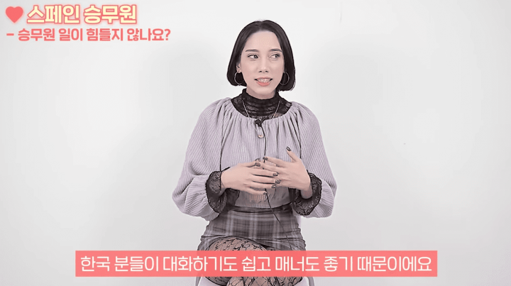 이어 그녀는 승무원들이 느낀 한국 사람들에 대해 말했는데 한국인들은 눈치가 빠르며, 과한 요구를 하지 않으며 친절하다.