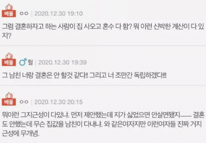 그렇게 6개월동안 동거를 하고 있는 와중에 남자친구가 “이 집에 대한 돈은 내가 다 내잖아”라고 말하자 A씨는 “당연히 오빠가 내야지. 오빠가 같이 살자고 했잖아”라고 반문했다.
