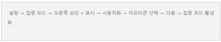 사용자화에서 아래로 스크롤을 하면 ‘하트(♥)’가 있으며, 하트를 누른 후 집중모드를 활성화하면 완료된다.