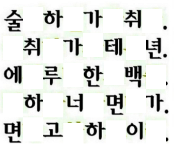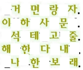 두번째 ‘이’부터 대각선 위로 읽으면 ‘이거 해석하면 나한테 사랑한다고 문자 보내줄래’라는 것을 확인할 수 있었다.