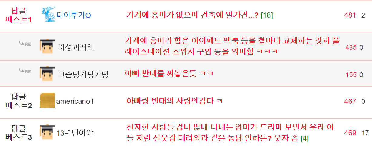 이를 본 온라인 커뮤니티 네티즌들은 “기계에 흥미가 없으면서 건축에 일가견이 있어야 하나요?”, “아빠랑 반대의 사람을 찾으시는 것 같네요.”라는 반응을 보였다.