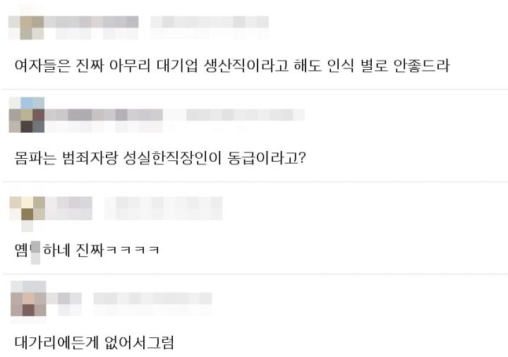 생산직 다니는 남자가 술집 여자랑 똑같다는 소름돋는 논리