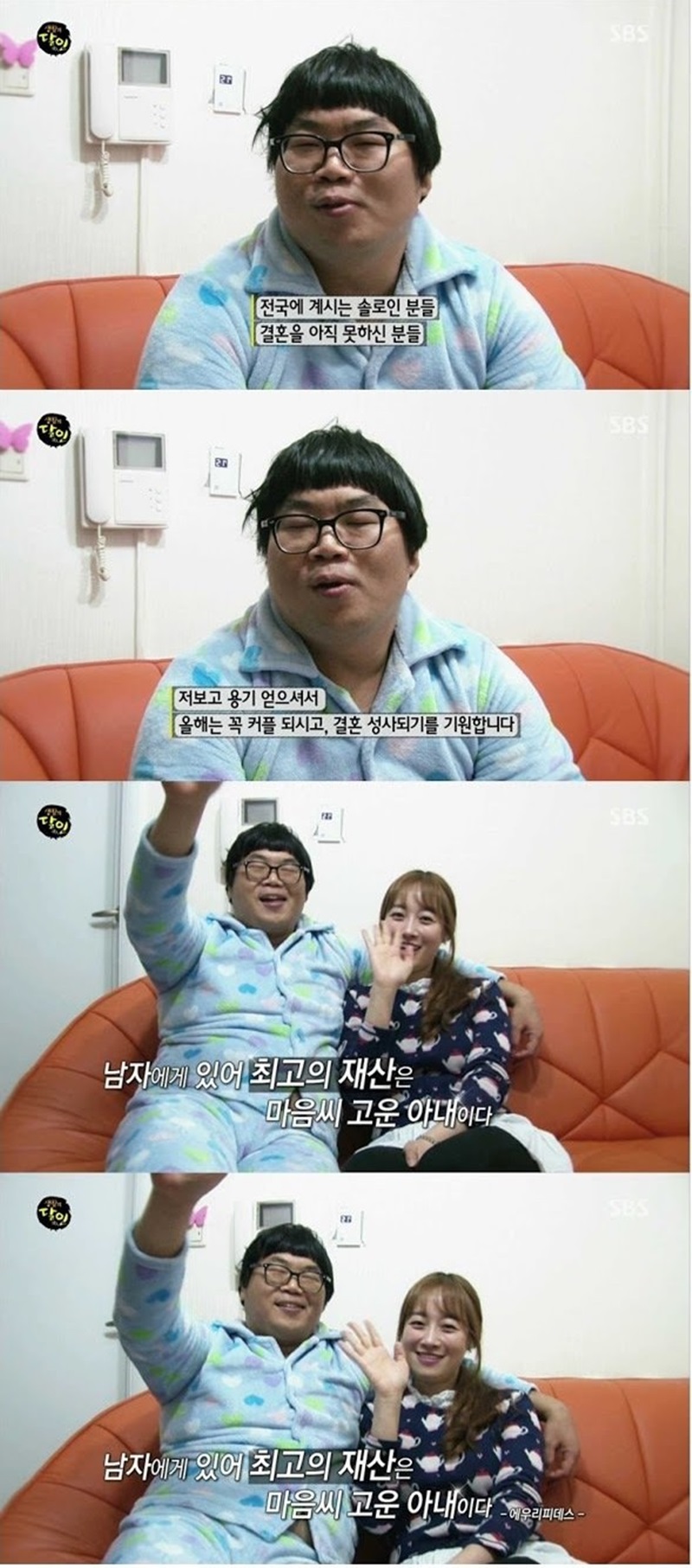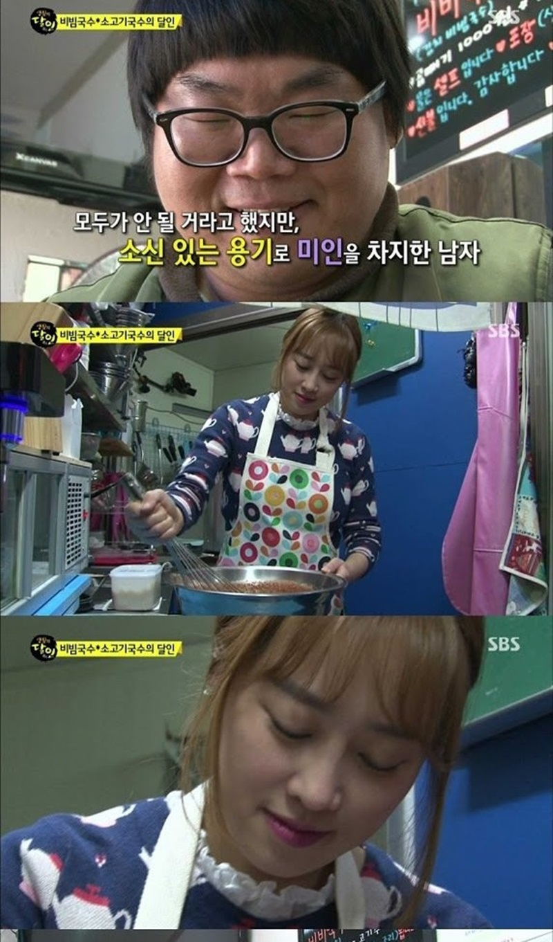 실제 방송에서도 ‘모두가 안 될 것이라고 했지만 소신있는 용기로 미인을 차지한 남자’라며 남자의 용기를 칭찬했다.