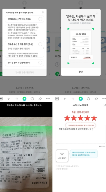 “아까 사진들 찍는 거 같던데 영수증 리뷰 좀 써주세요~” 라 하면서 영수증 4개를 미리 뽑아와서 A씨 포함 4명한테 ‘후기’ 를 부탁했다.