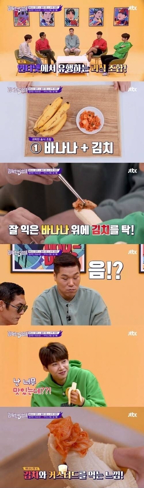 첫 번째 음식 조합으로 바나나와 김치가 나왔는데 이를 먹은 출연진들은 “정말 맛있다.”, “김치와 커스터드를 같이 먹는 것 같다.”라는 반응을 보였다.