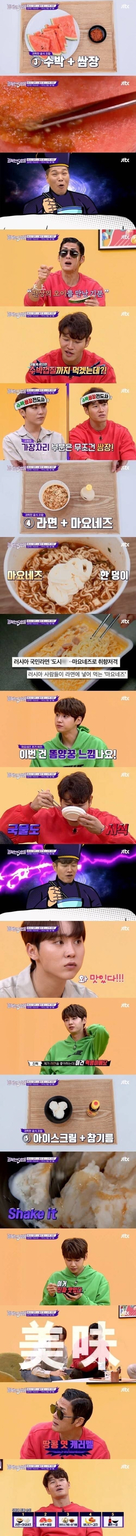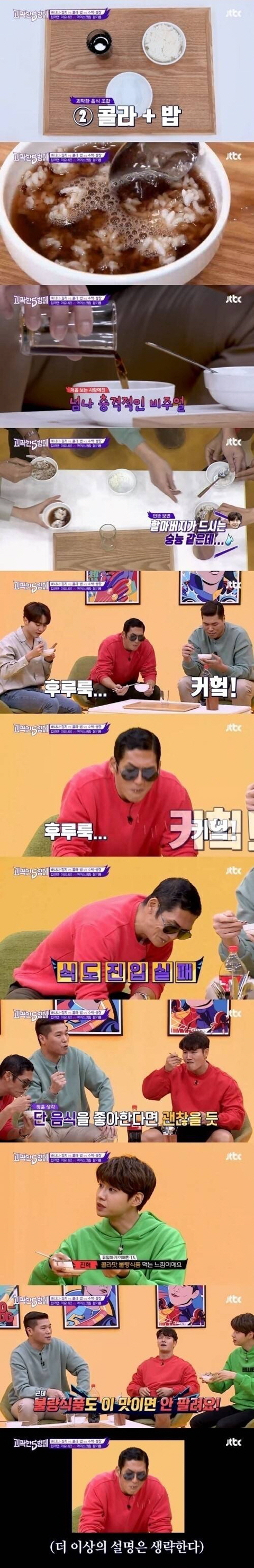 뒤이어 콜라와 밥의 조합, 수박과 쌈장의 조합 등 다양한 음식의 조합이 나왔는 데 그 모습에 충격을 숨기지 못했다.