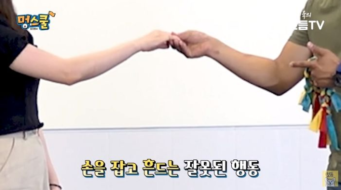 그 장면에서 강형욱 훈련사는 보호자에게 “손을 올리면 보호자들이 실수하는게 있는데 강아지 손을 잡고 흔든다”고 말했다.