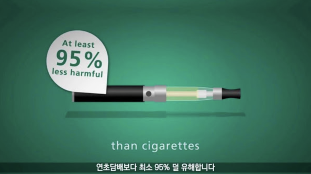 둘다 몸에는 해롭지만 일반 담배에 가장 해로운 두 성분인 ‘일산화탄소’와 ‘타르’가 없는 전자담배가 인체에 95%나 덜 유해하다고 한다.