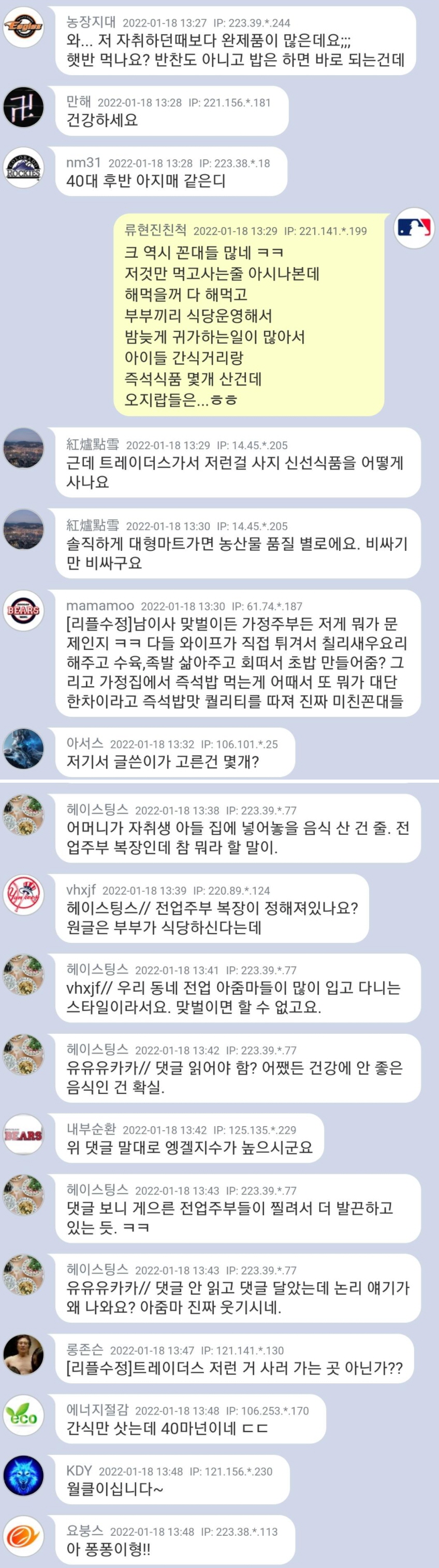 이어서 “저렇게 완제품만 먹다보면 건강에 정말 안 좋아요.”, “20대 자취생들도 아니고 저건 솔직히 좀 심하네요.”라고 말을 덧붙였다.