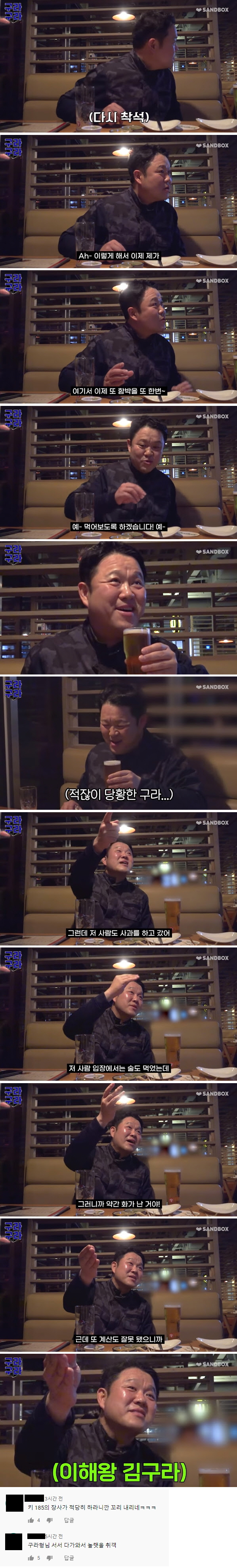유튜브 그리 구라에 업로드된 동영상에서는 방송 중 취객을 마주친 김구라에 관한 내용을 다뤘다.